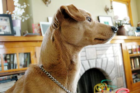 He could hear the mailman walking over from next door which means TREAT IS WALKING OVER TO OUR HOUSE. TREAT. TREAT. JUST GIVE ME THE FUCKING TREAT.